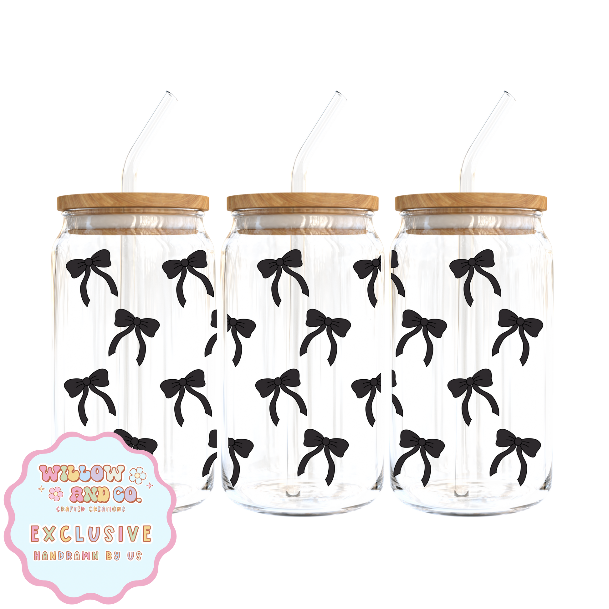 Sip your favourite drinks in style with our charming 450ml (16 oz) glass tumblers. Perfect as a gift for loved ones or a treat for yourself, each tumbler comes complete with a bamboo lid and a reusable glass straw, combining elegance with eco-friendly functionality. Our designs are meticulously applied by hand using premium UV-DTF transfers, ensuring they are permanent, waterproof, and able to withstand everyday use and washing.