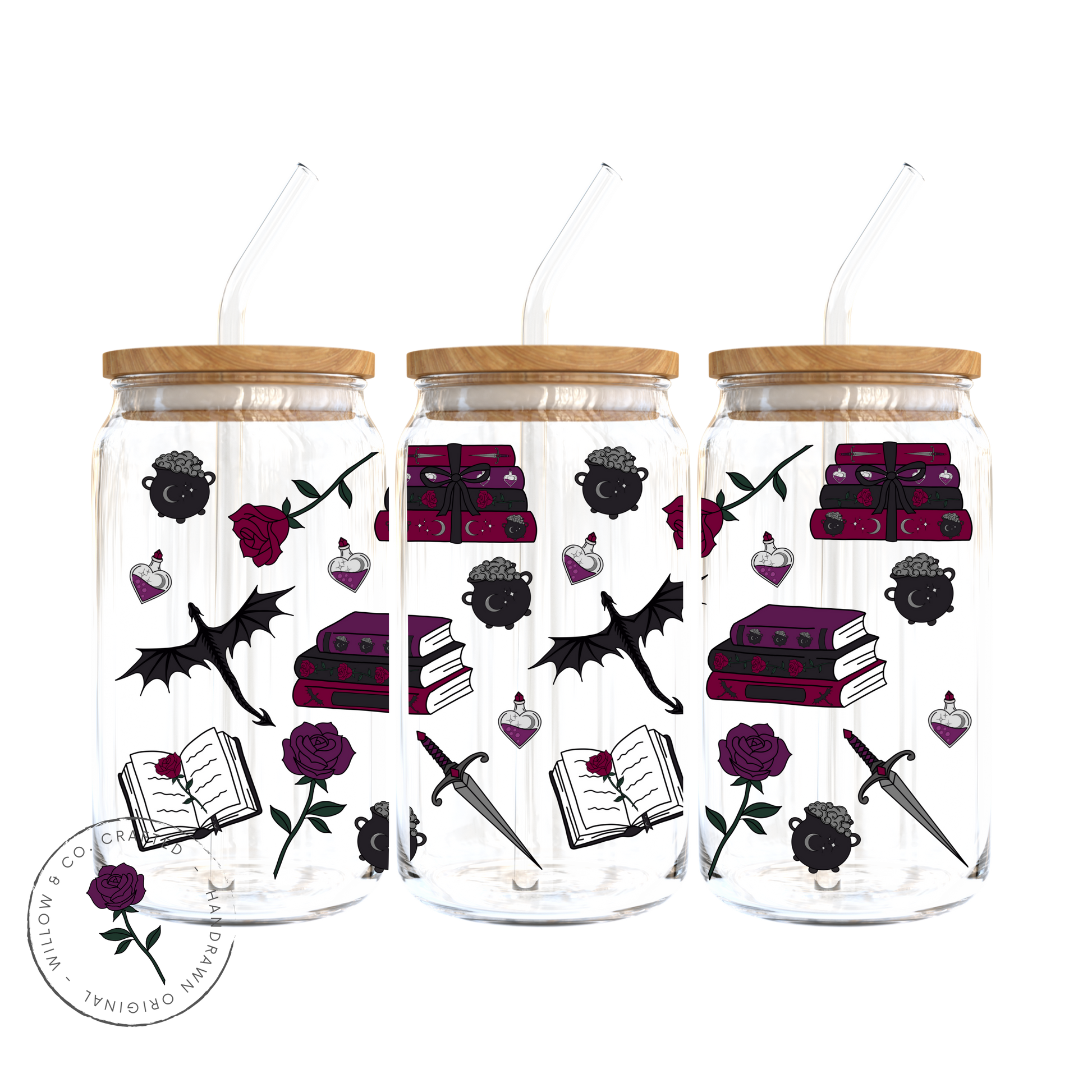Sip your favourite drinks in style with our charming 450ml (16 oz) glass tumblers. Perfect as a gift for loved ones or a treat for yourself, each tumbler comes complete with a bamboo lid and a reusable glass straw, combining elegance with eco-friendly functionality. Our designs are meticulously applied by hand using premium UV-DTF transfers, ensuring they are permanent, waterproof, and able to withstand everyday use and washing.