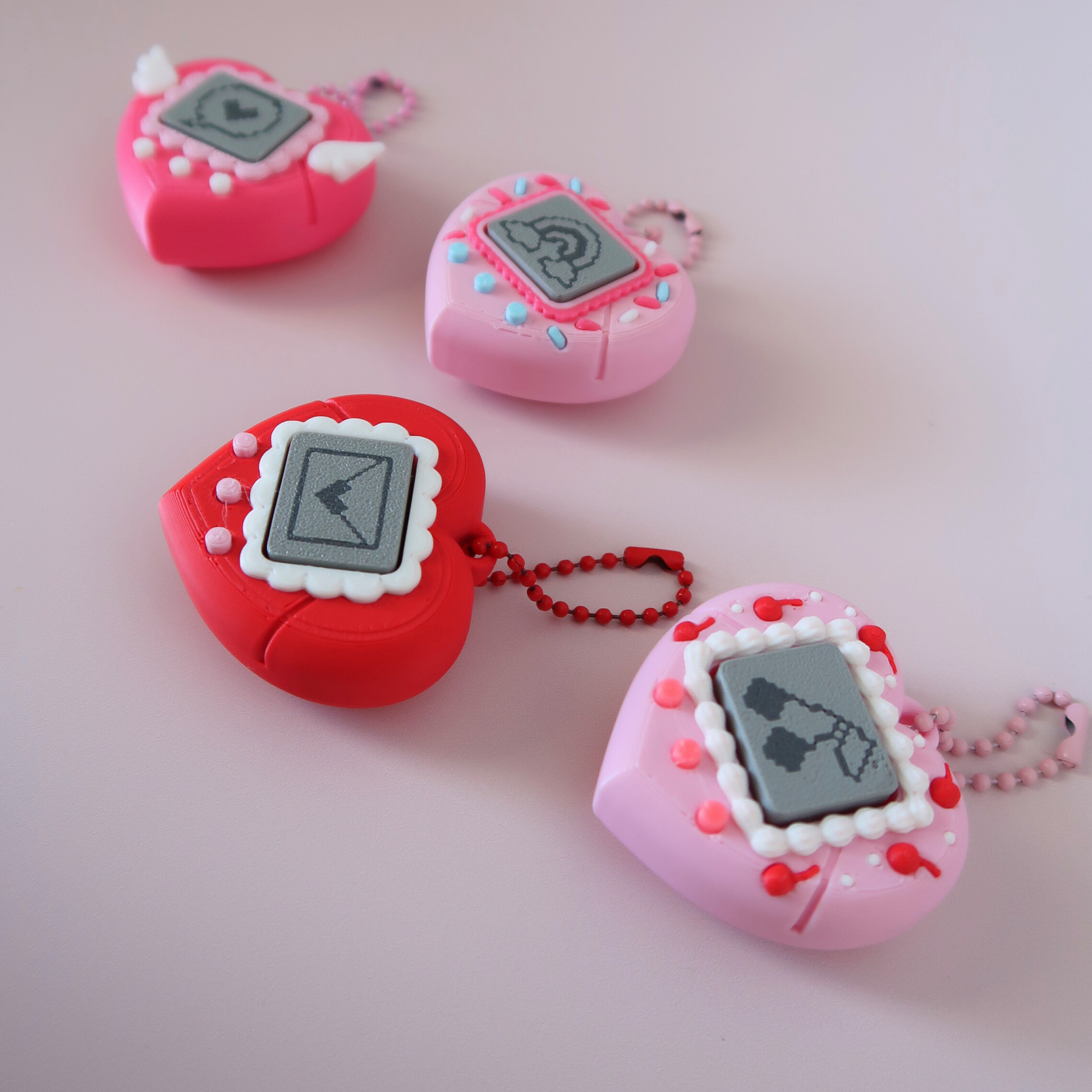 Each heart features a crisp mechanical keyboard-style click beneath the screen and can be customised with your choice of six exclusive love-themed screens, or keep it classic with one of our original Pocket Pet designs.