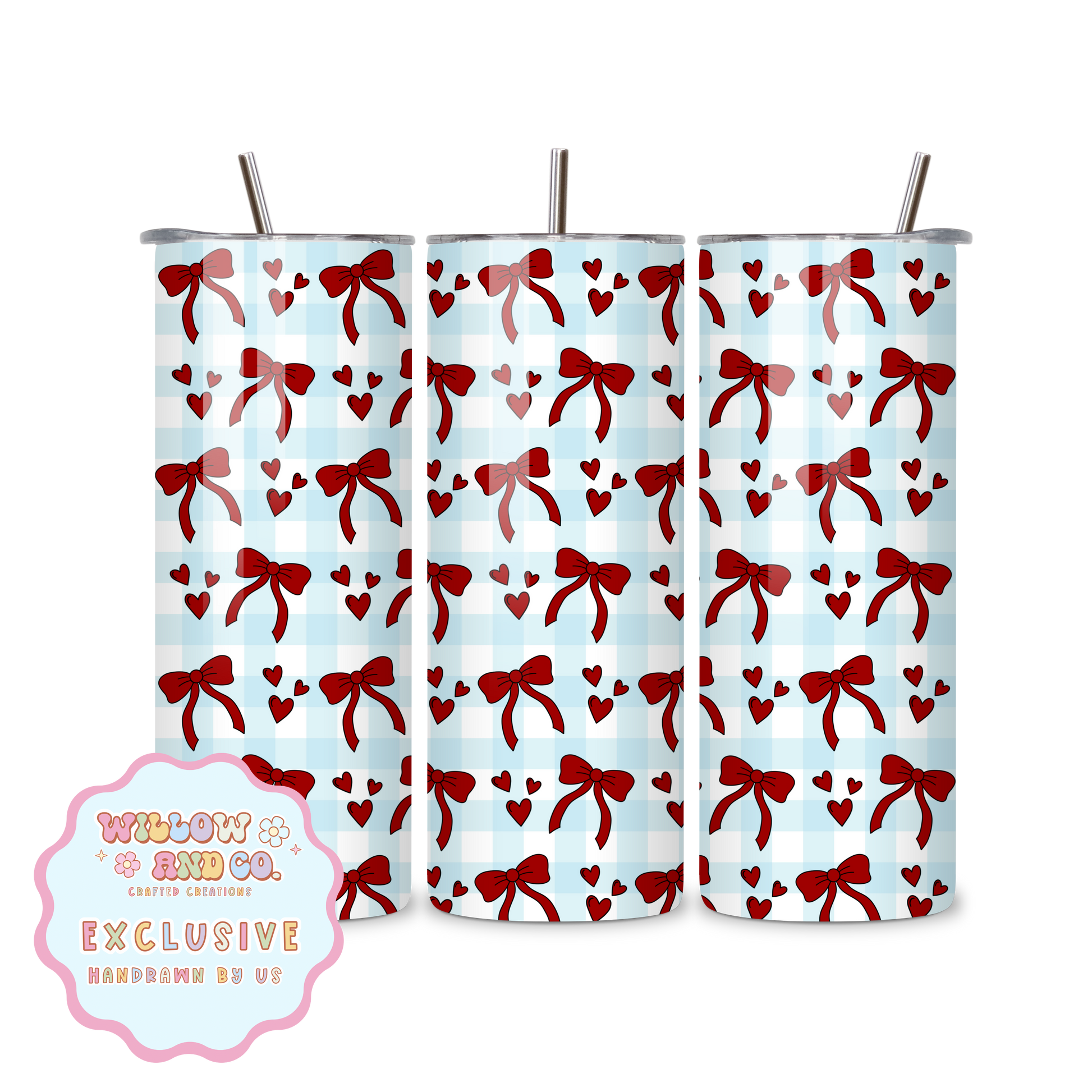 Love & Bows (Blue Gingham) - Metal Tumbler