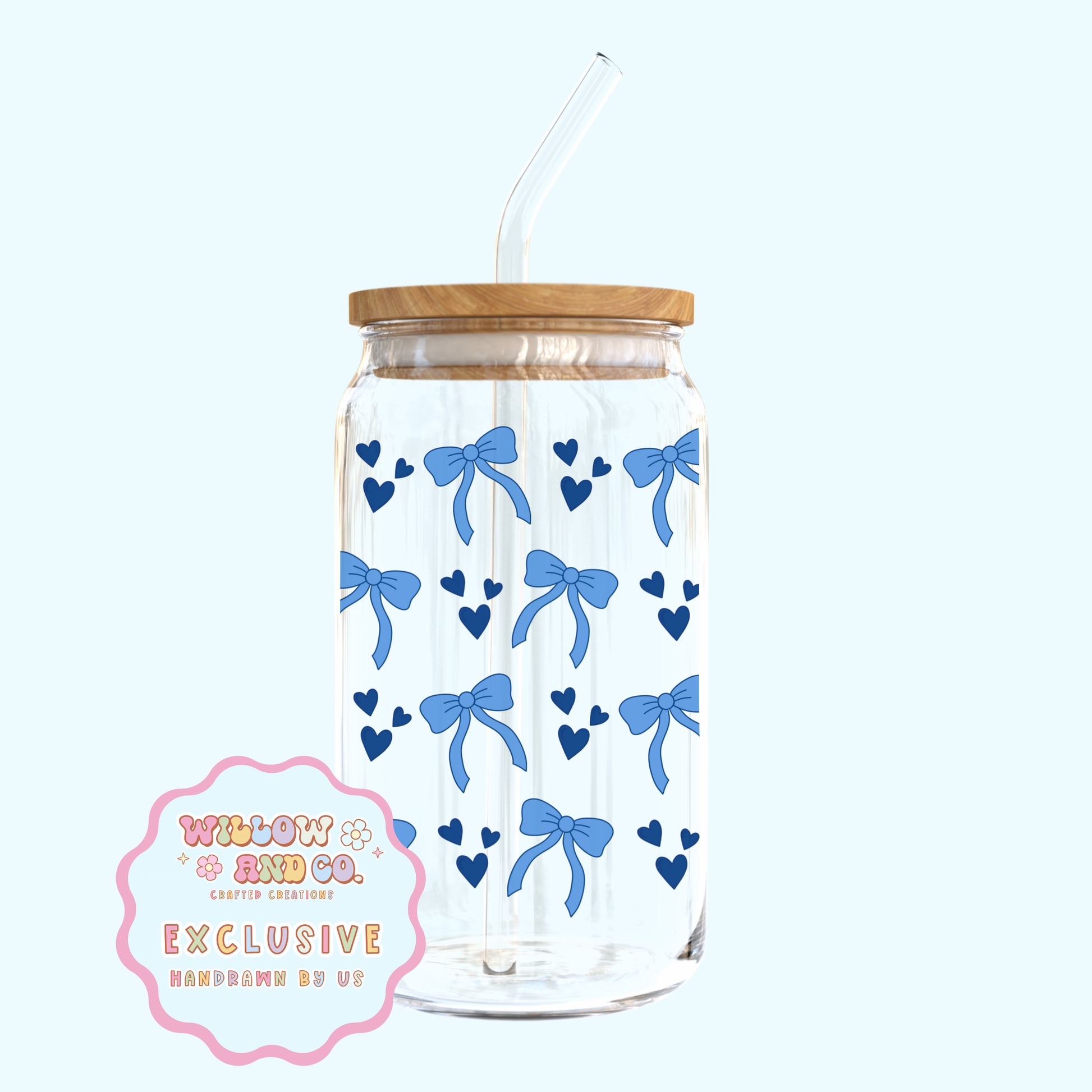 Sip your favourite drinks in style with our charming 450ml (16 oz) glass tumblers. Perfect as a gift for loved ones or a treat for yourself, each tumbler comes complete with a bamboo lid and a reusable glass straw, combining elegance with eco-friendly functionality. Our designs are meticulously applied by hand using premium UV-DTF transfers, ensuring they are permanent, waterproof, and able to withstand everyday use and washing.