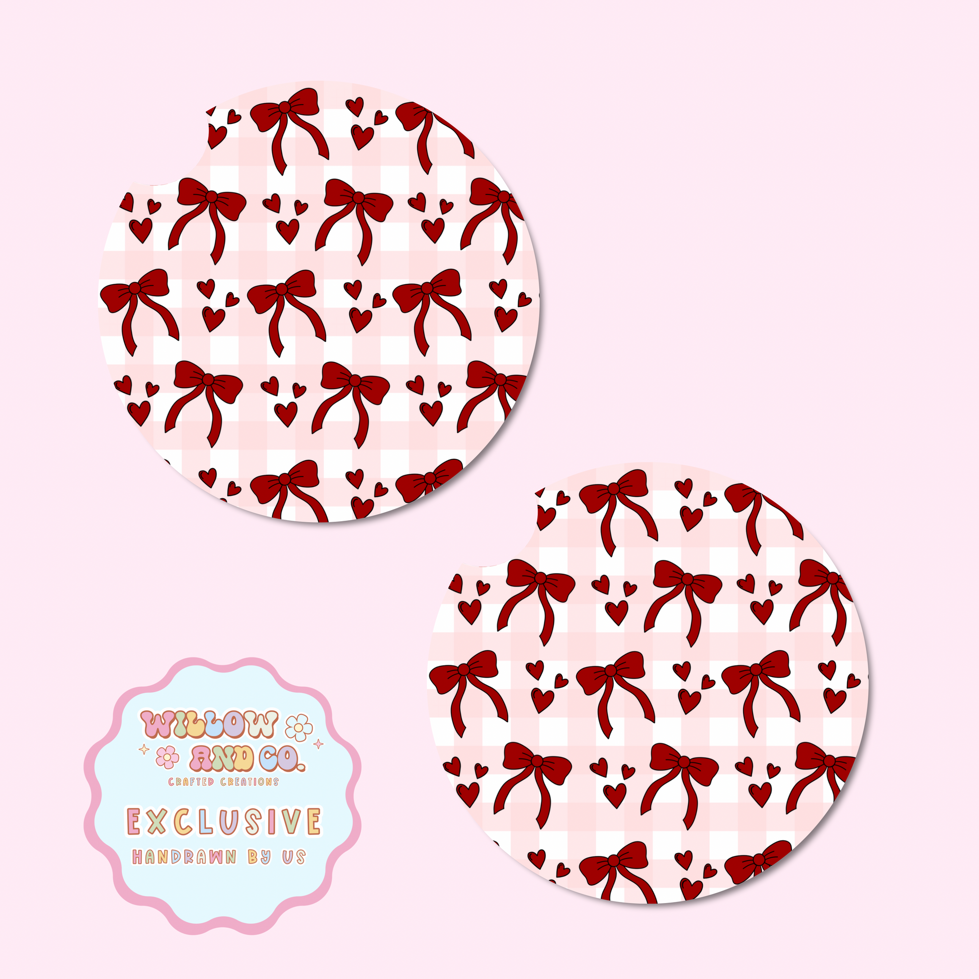 Love & Bows (Pink Gingham) - Car Coasters