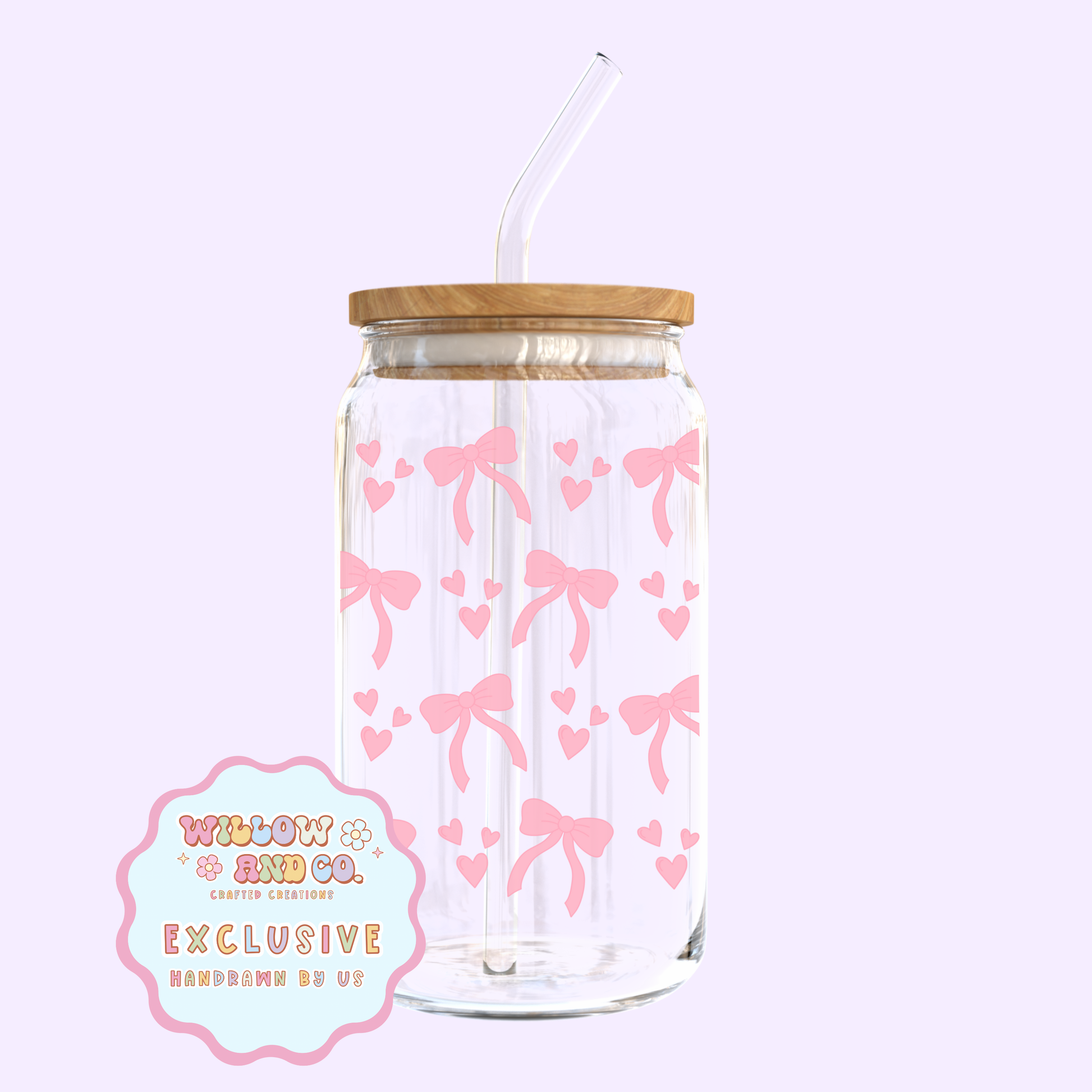 Sip your favourite drinks in style with our charming 450ml (16 oz) glass tumblers. Perfect as a gift for loved ones or a treat for yourself, each tumbler comes complete with a bamboo lid and a reusable glass straw, combining elegance with eco-friendly functionality. Our designs are meticulously applied by hand using premium UV-DTF transfers, ensuring they are permanent, waterproof, and able to withstand everyday use and washing.