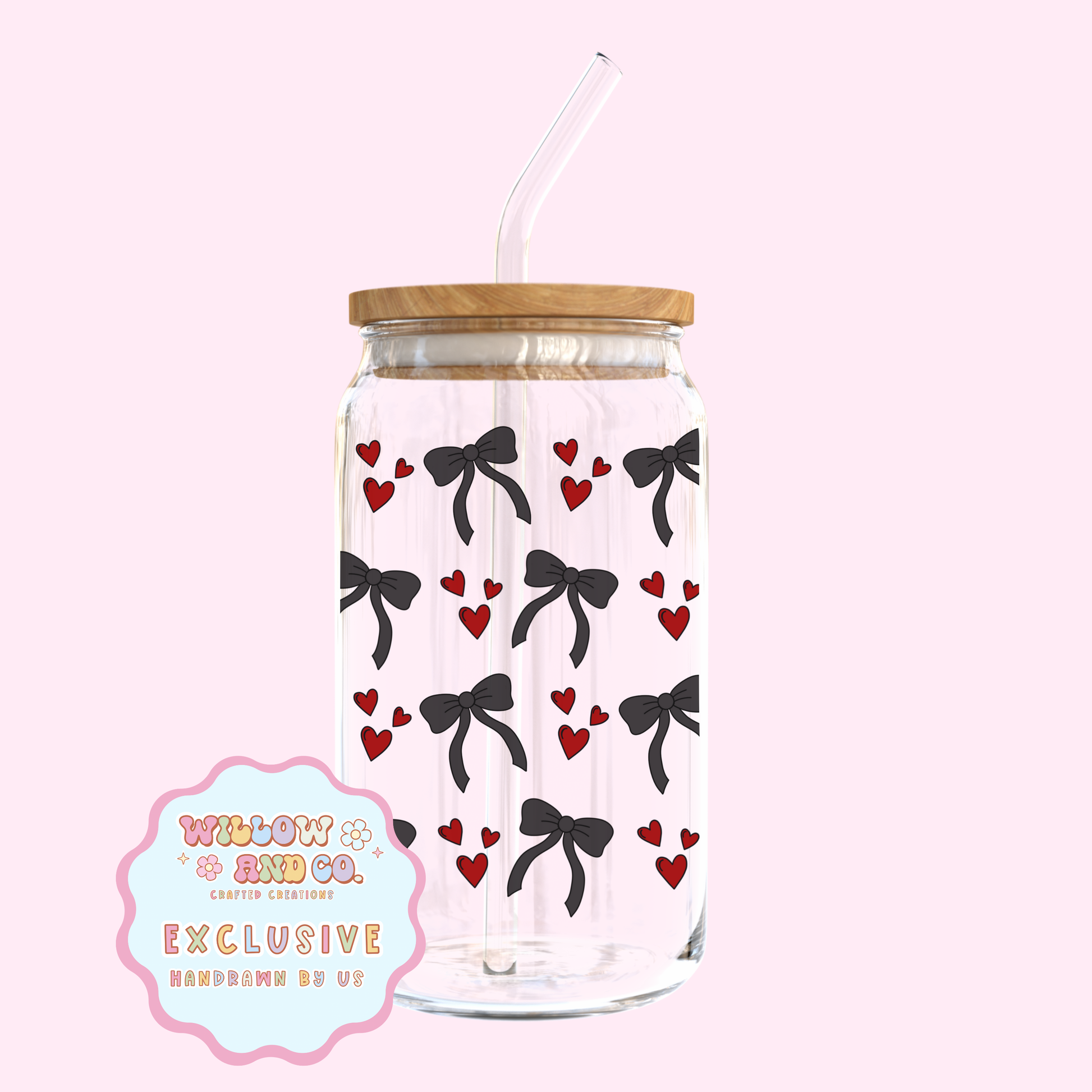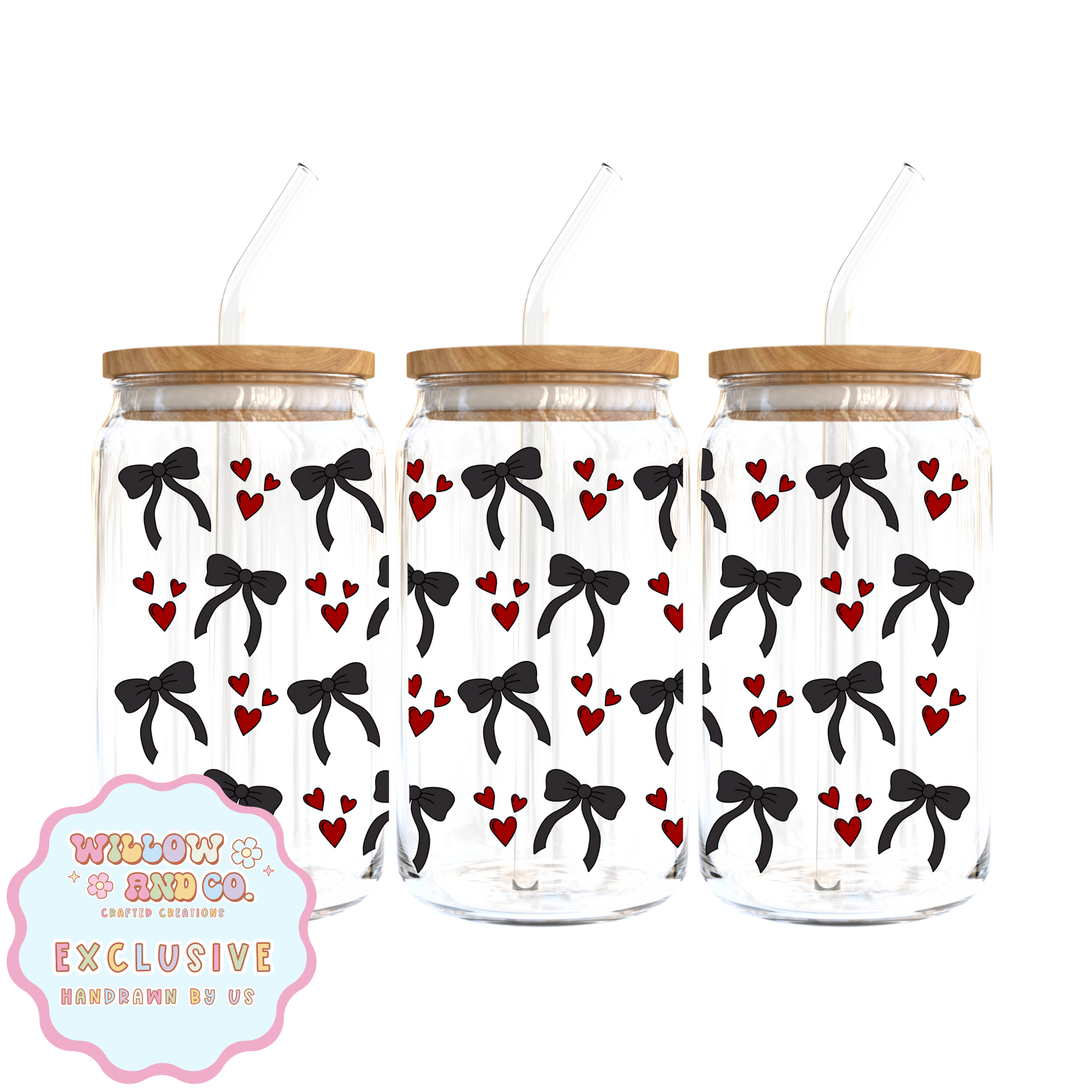 Sip your favourite drinks in style with our charming 450ml (16 oz) glass tumblers. Perfect as a gift for loved ones or a treat for yourself, each tumbler comes complete with a bamboo lid and a reusable glass straw, combining elegance with eco-friendly functionality. Our designs are meticulously applied by hand using premium UV-DTF transfers, ensuring they are permanent, waterproof, and able to withstand everyday use and washing.