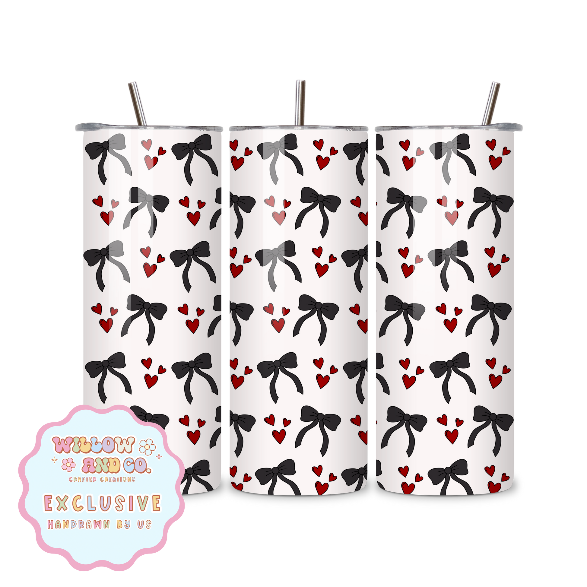 Love & Bows (Red & Black) - Metal Tumbler