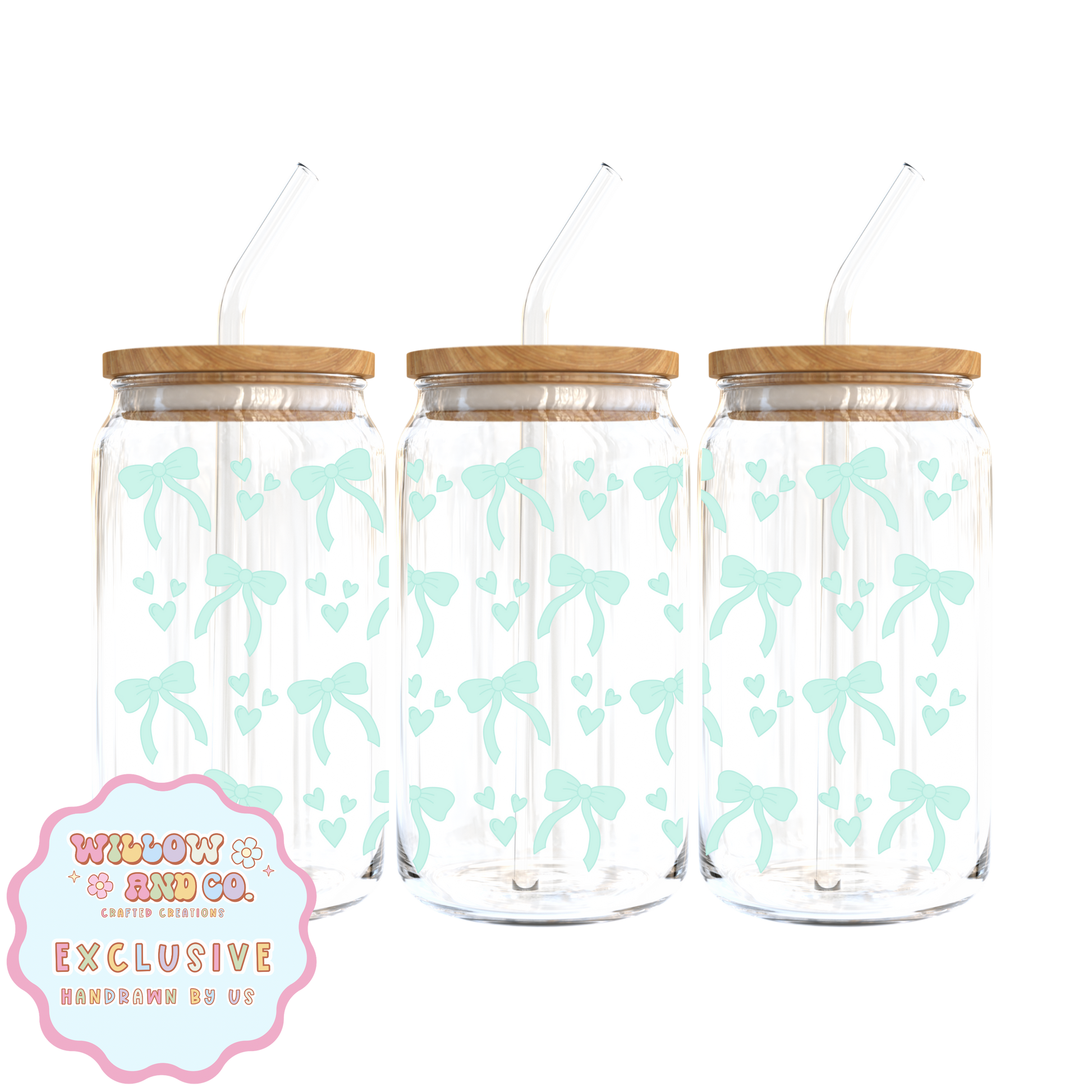 Love & Bows (Teal) - Glass Tumbler