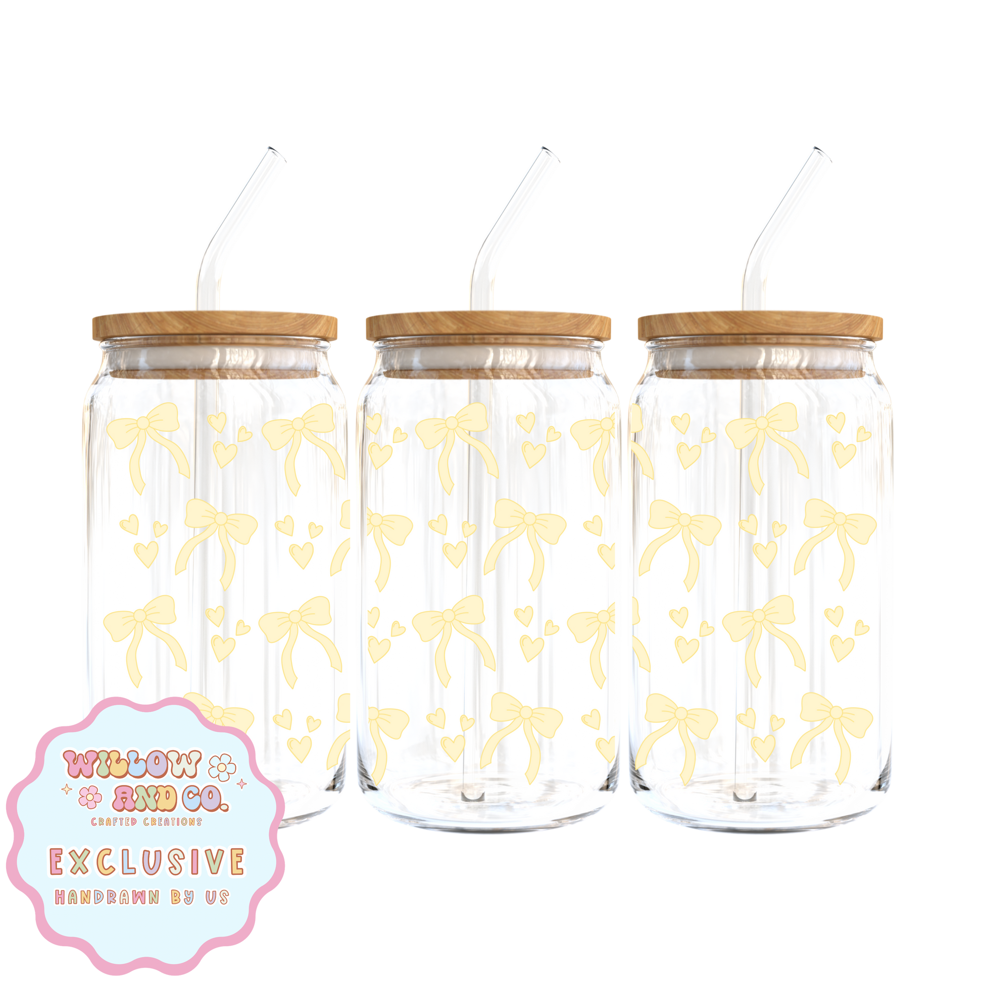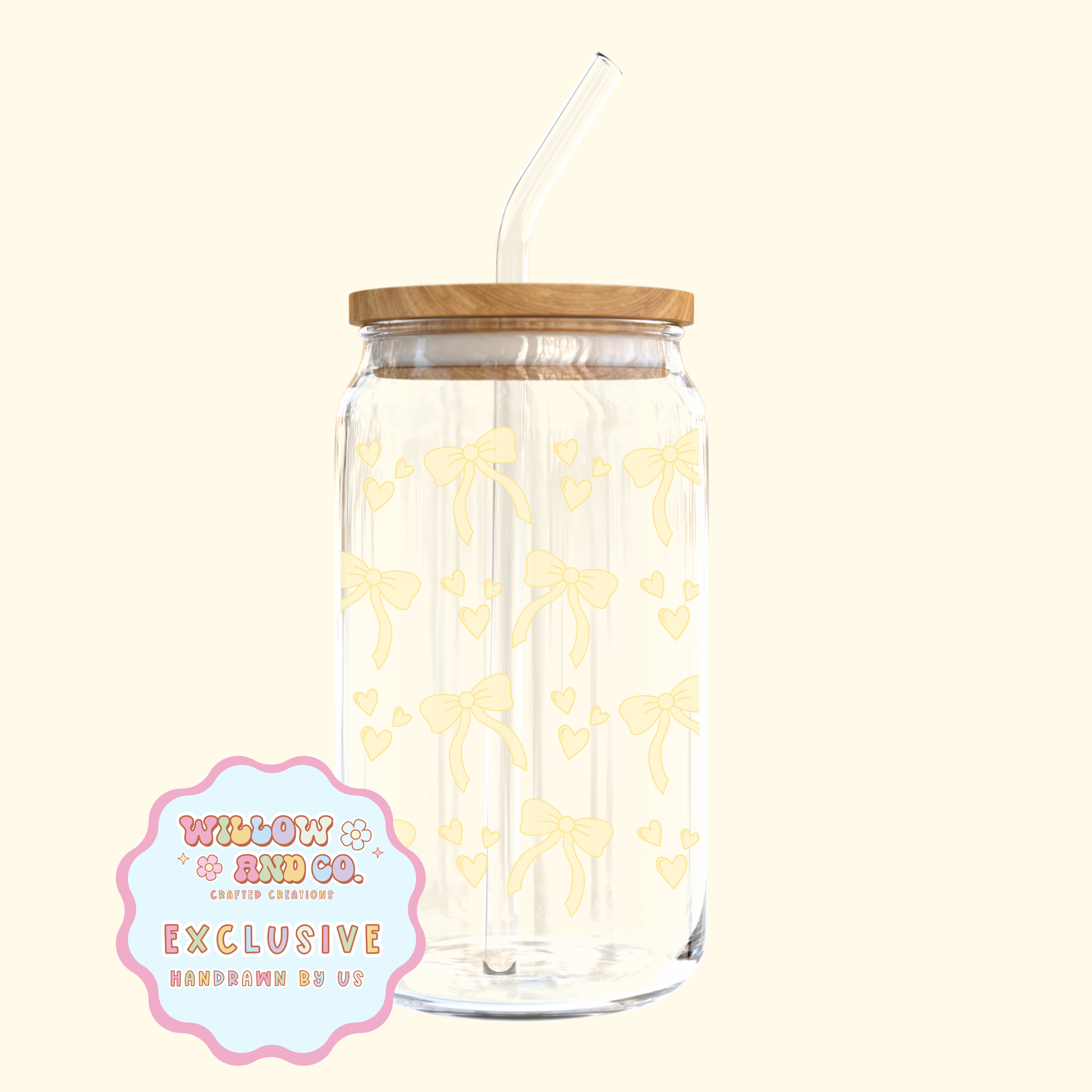 Sip your favourite drinks in style with our charming 450ml (16 oz) glass tumblers. Perfect as a gift for loved ones or a treat for yourself, each tumbler comes complete with a bamboo lid and a reusable glass straw, combining elegance with eco-friendly functionality. Our designs are meticulously applied by hand using premium UV-DTF transfers, ensuring they are permanent, waterproof, and able to withstand everyday use and washing.